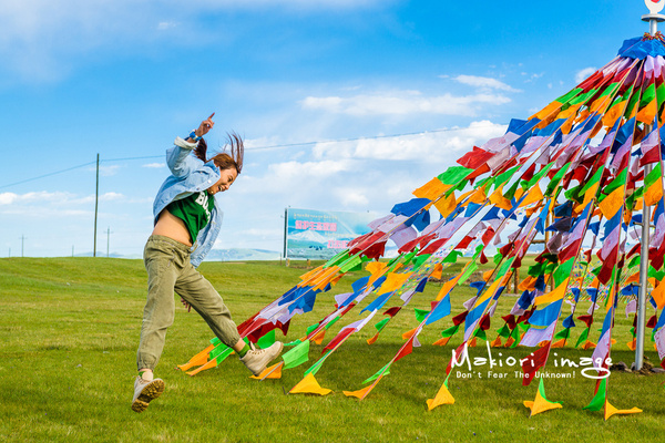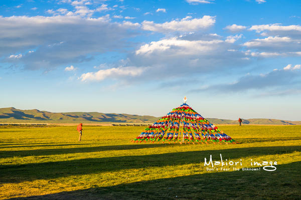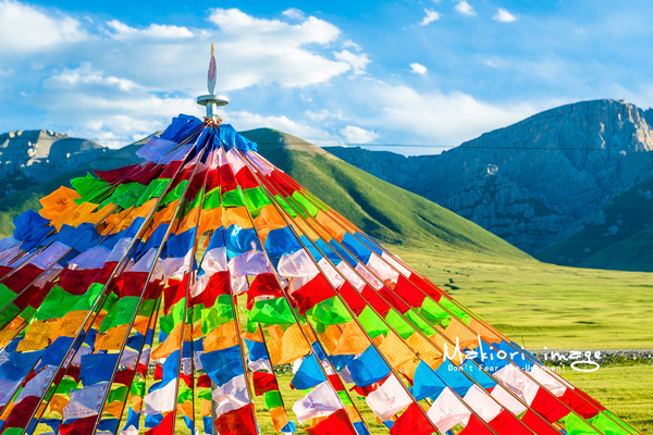 經(jīng)幡隨風(fēng)飄動,每飄動一次,吉祥祝福的意愿就飄向遠方。我坐在不遠處的草坪上,帶著虔誠凝視了許久。