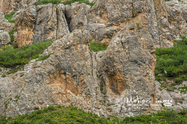 仔細(xì)一看,不少石壁上經(jīng)當(dāng)?shù)氐牟孛裰之嬌狭艘环蜩蛉缟谋诋嫛H宋镄螒B(tài)惟妙惟肖,色彩艷麗線條穩(wěn)重。問了下當(dāng)?shù)厝,才得知這里的石林在形成的過程中遭遇了青藏高原抬升造成的缺水、干旱,水蝕過程未能完成,而是經(jīng)過漫長的風(fēng)蝕后,形成了現(xiàn)在這樣的獨特風(fēng)貌。
