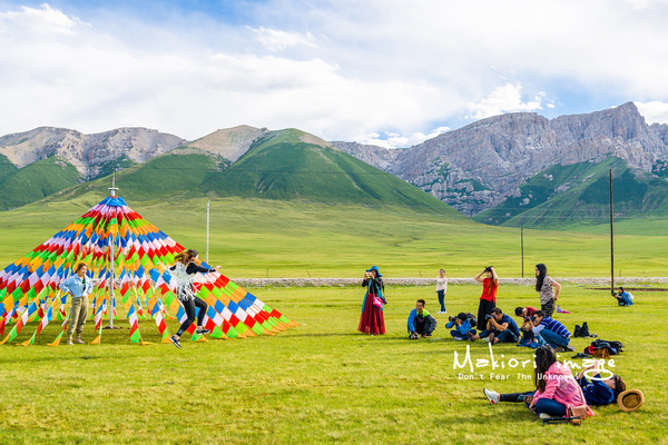 天峻山下面就是一望無際的天峻草原,在這里有不少藏民在此生活順便接待游客。天色還早,我和我的小伙伴們就在此拍照嬉戲。高原的寬曠真的能讓人從壓抑的城市生活中解放出來,盡情的抒發(fā)自己的情懷和展現(xiàn)自己。