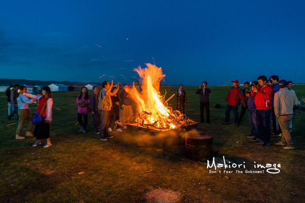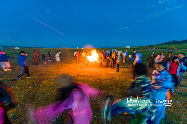 夜色襲來,天空的云彩也被陽光染上了一層緋紅,大地開始沉睡,山上放牧歸來的牛羊時不時發(fā)出幾聲叫喚。但是,一場別開生面的草原party卻即將上演。